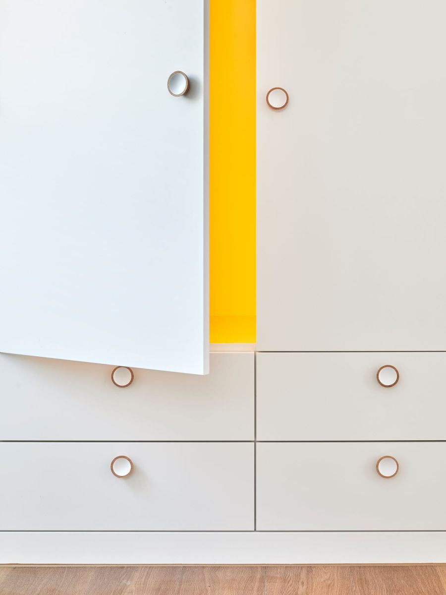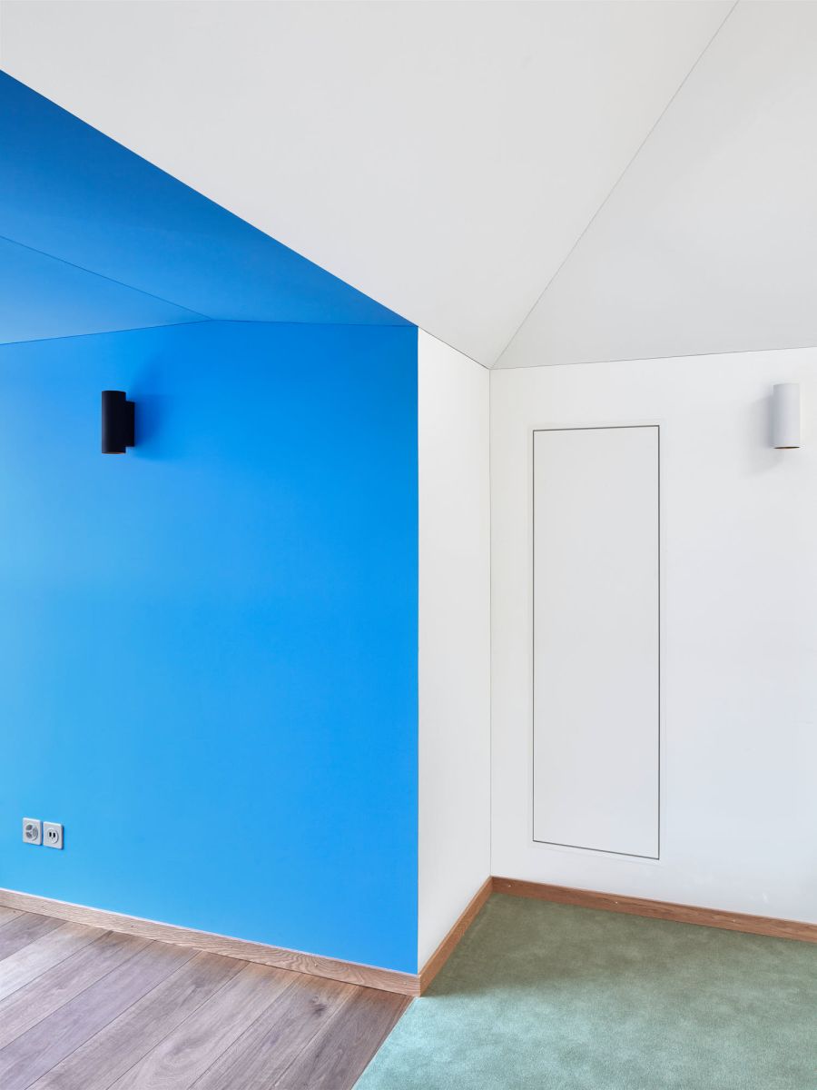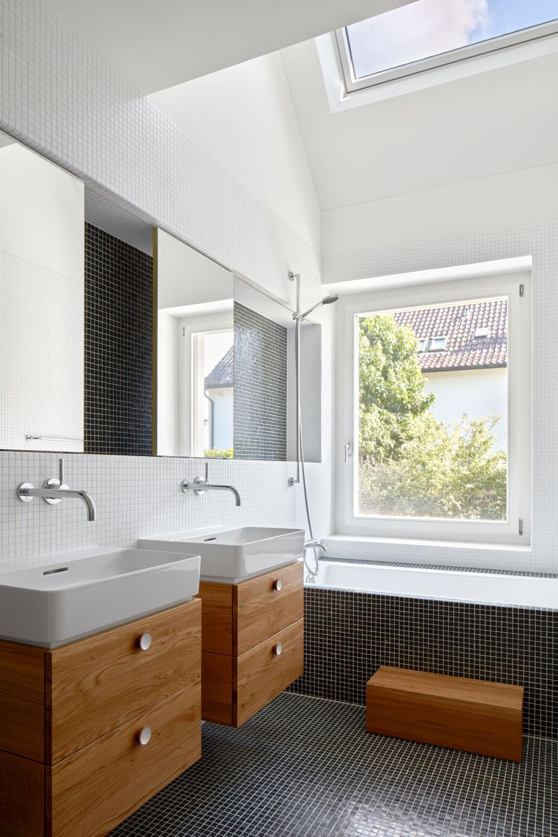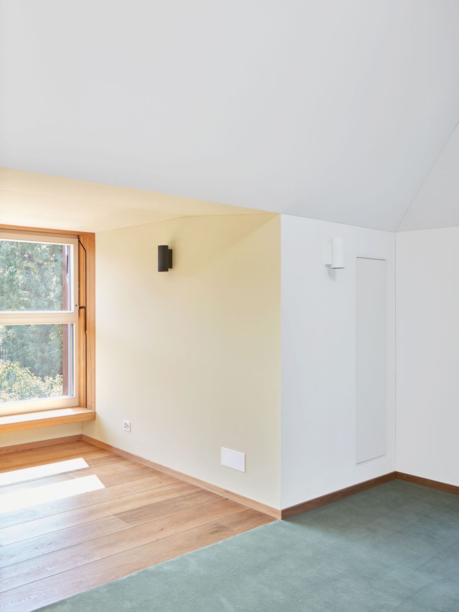 BHSF Architekten haben das Gebäude von seiner unentschlossenen, zwischen Landistil und klassischer Moderne changierenden Ornamentik befreit und den Grundrisszuschnitt an die Bedürfnisse der jungen Familie der Bauherrschaft angepasst, so dass letztlich nur die bauliche Substanz des Rohbaues erhalten geblieben ist.