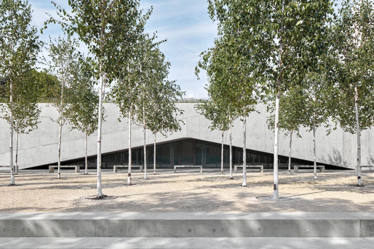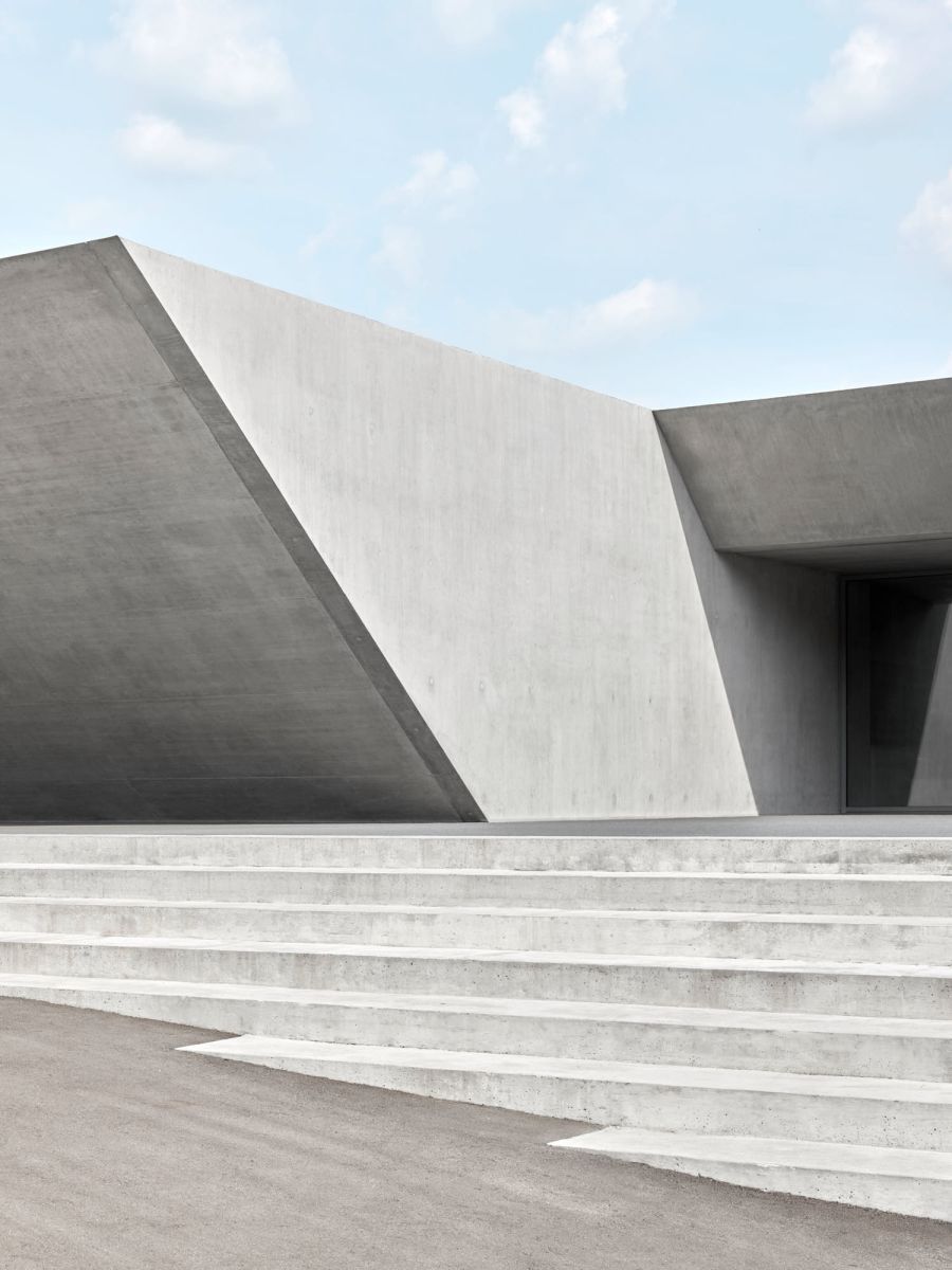 Die Doppelsporthalle wird dem Schulareal als Neubau hinzugefügt. In ihrer Ausführung als Sichbetonkonstruktion verleiht sie dem Areal einen modernen Charakter und fügt sich zugleich behutsam in den Bestand des Areals ein. Um die Maßstäblichkeit im räumlichen Gefüge zu erhalten ist sie partiell in den Hang eingelassen, wodurch die gesamte Dachfläche erschlossen und so einen Ort der Öffentlichkeit für Schule und Dorfbewohner wird.